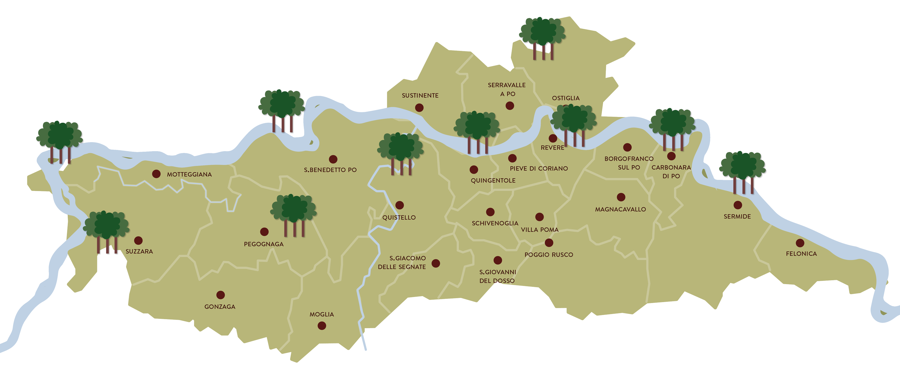 SUZZARA, SERMIDE, FELONICA)Ospita vasti e recenti boschi ripariali, pioppeti, seminativi, saliceti spontanei, sabbioni, zone umide in corrispondenza di vecchie cave di argilla e bugni. Gli interventi di riqualificazione naturalistica effettuati dal 2000, hanno portato alla messa a dimora di oltre 300.000 piante.